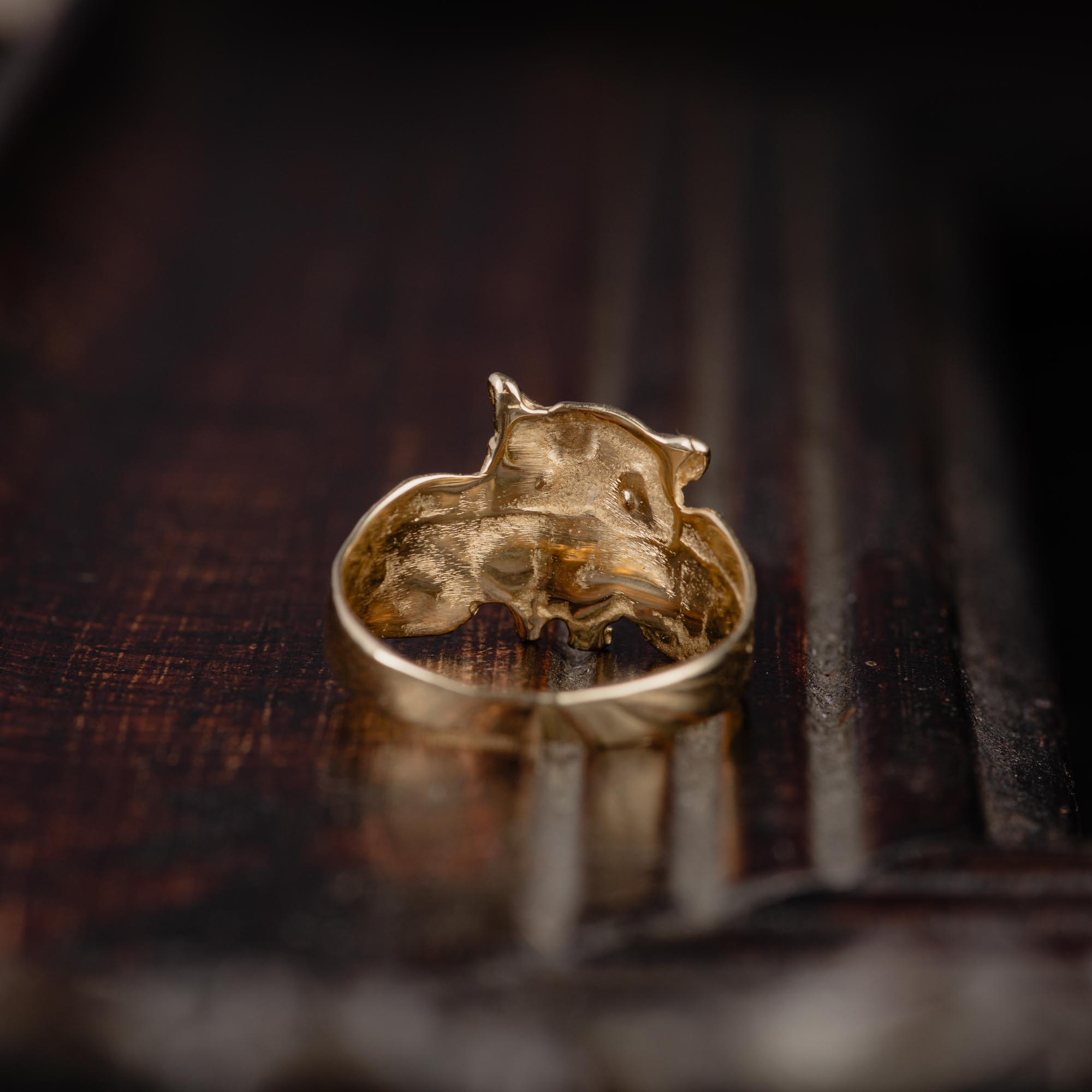 At the heart of the ring, two 2 mm black diamonds shimmer as the owl’s piercing eyes, evoking the mysterious allure of this nocturnal guardian. The intricate craftsmanship celebrates the owl’s connection to Athena, the Greek goddess of wisdom and strategy, who was often accompanied by this majestic bird as her sacred companion.