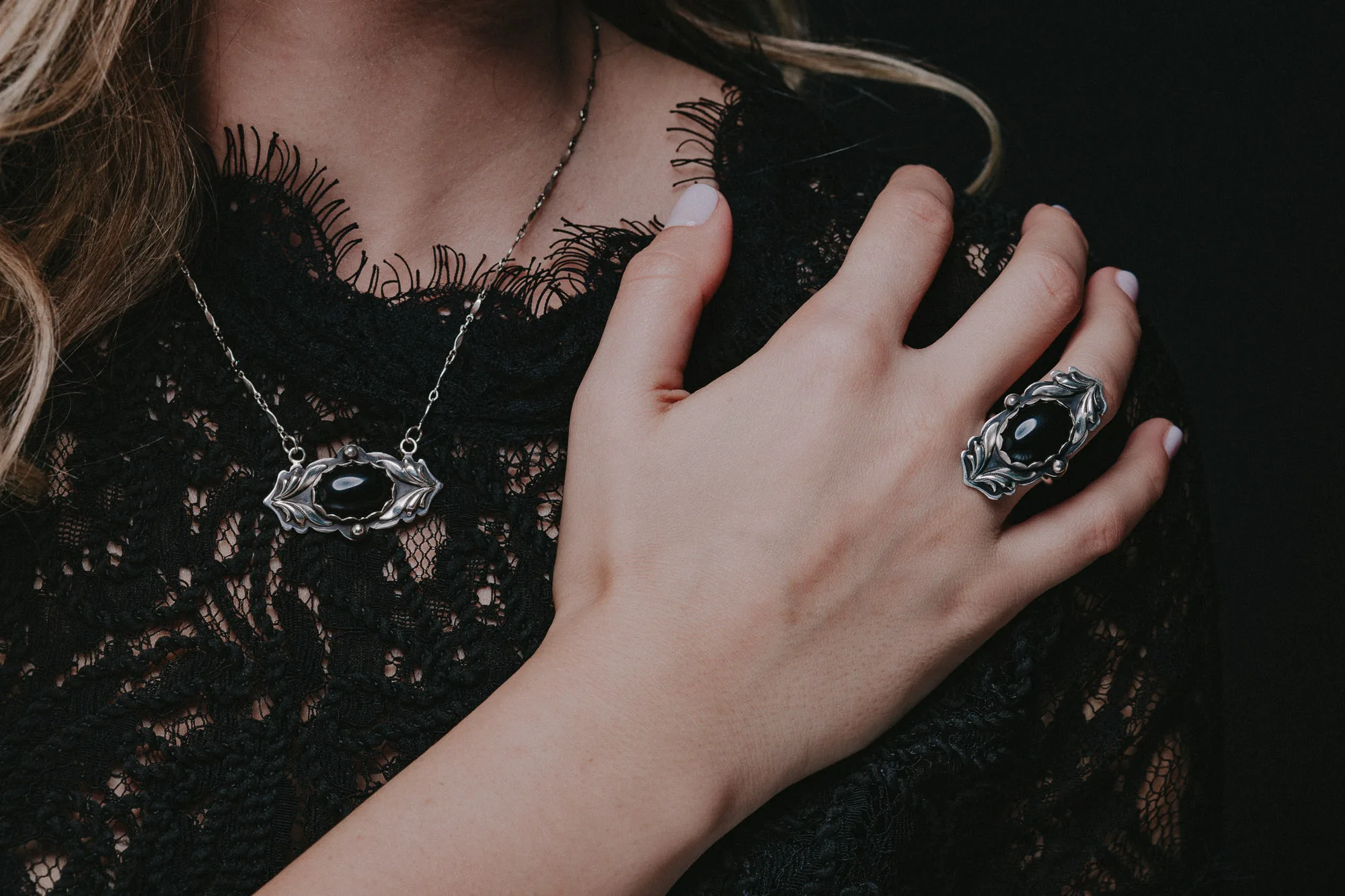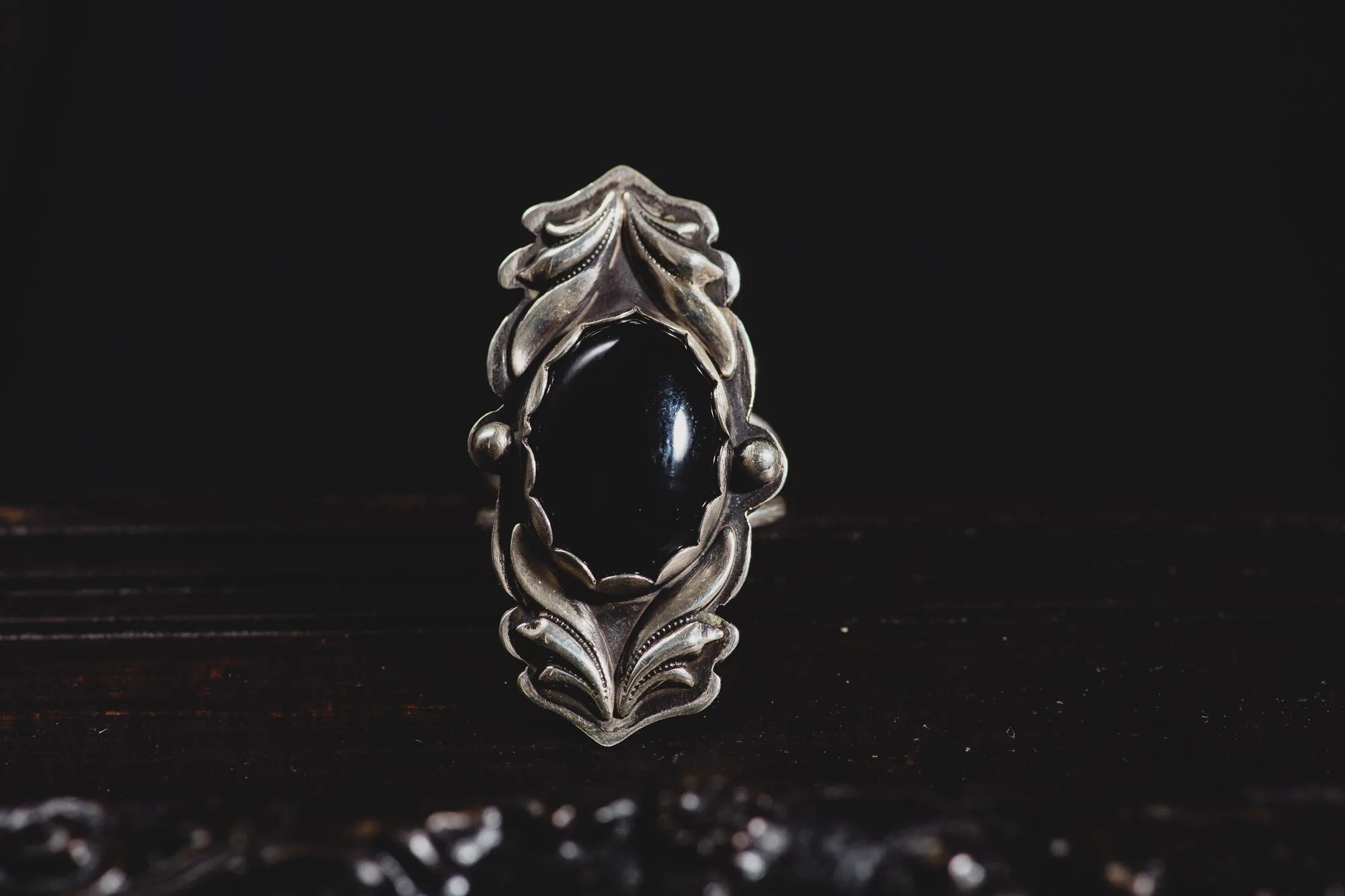 Drawing inspiration from Victorian and vintage elements, this onyx ring stands out with its detailed design, making it a stunning statement piece for every occasion. The classic combination of black onyx and silver adds classiness to any outfit, from casual to formal. As a must-have for admirers of handcrafted onyx jewelry, this ringensures a lasting addition to your collection.
