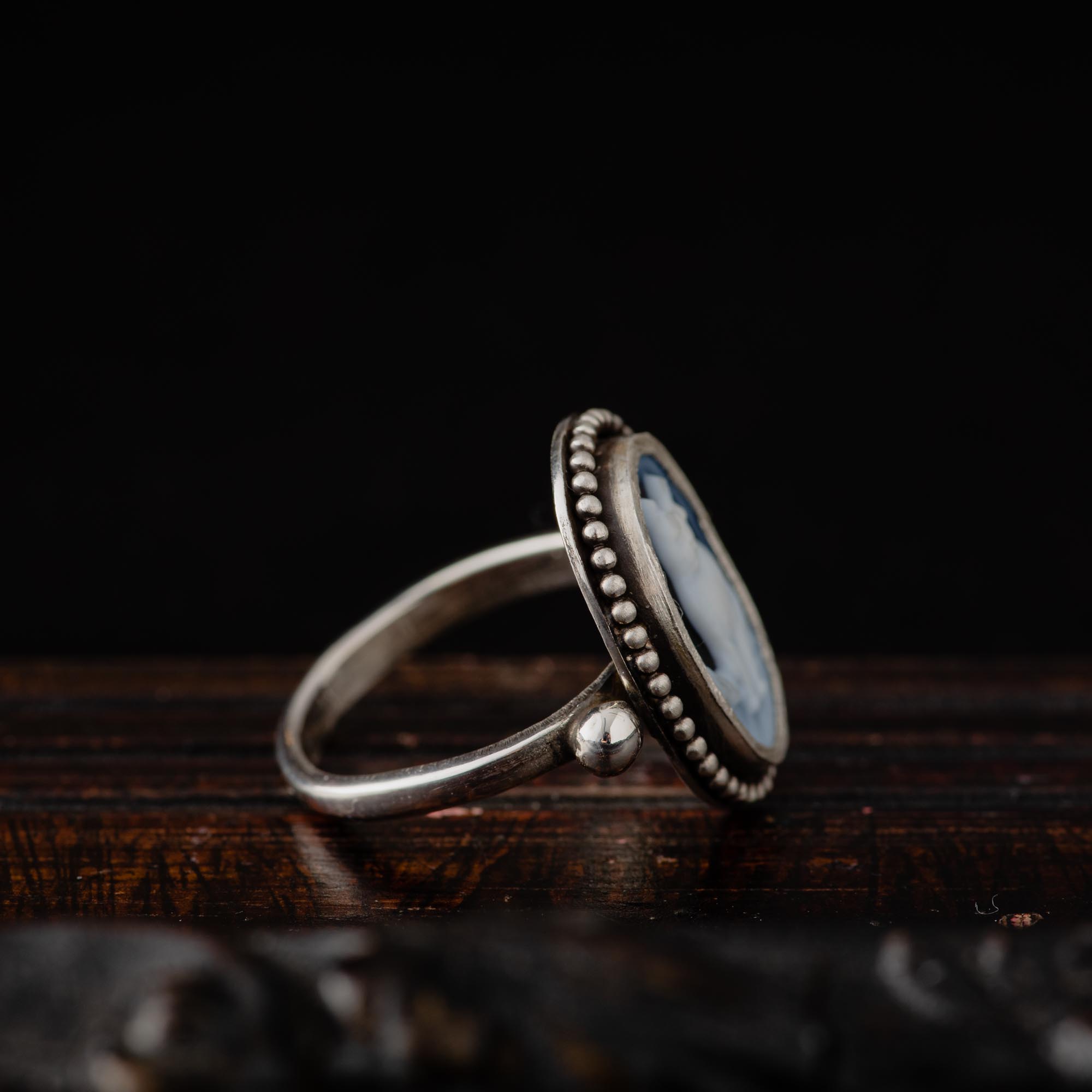 Immerse yourself into the charm of our Cat Cameo Sterling Silver Ring with Granulation. This vintage-inspired piece is handcrafted in our jewelry studio in Greece, capturing the essence of old-world elegance.