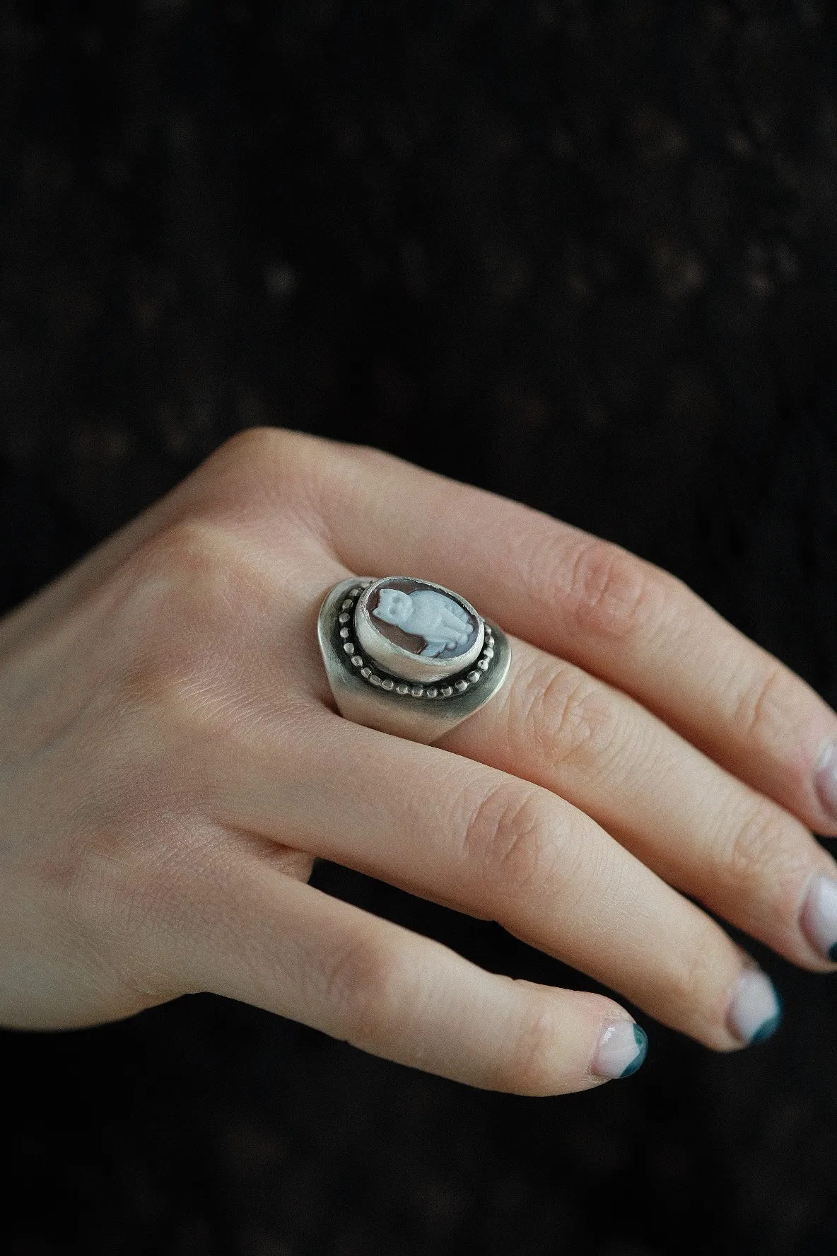 Add a touch of classiness to your outfit with our Cat Shell Cameo Sterling Silver Wide Ring. Let it transport you to the enchanting era of Victorian charm, where elegance and playfulness coexist in perfect harmony.