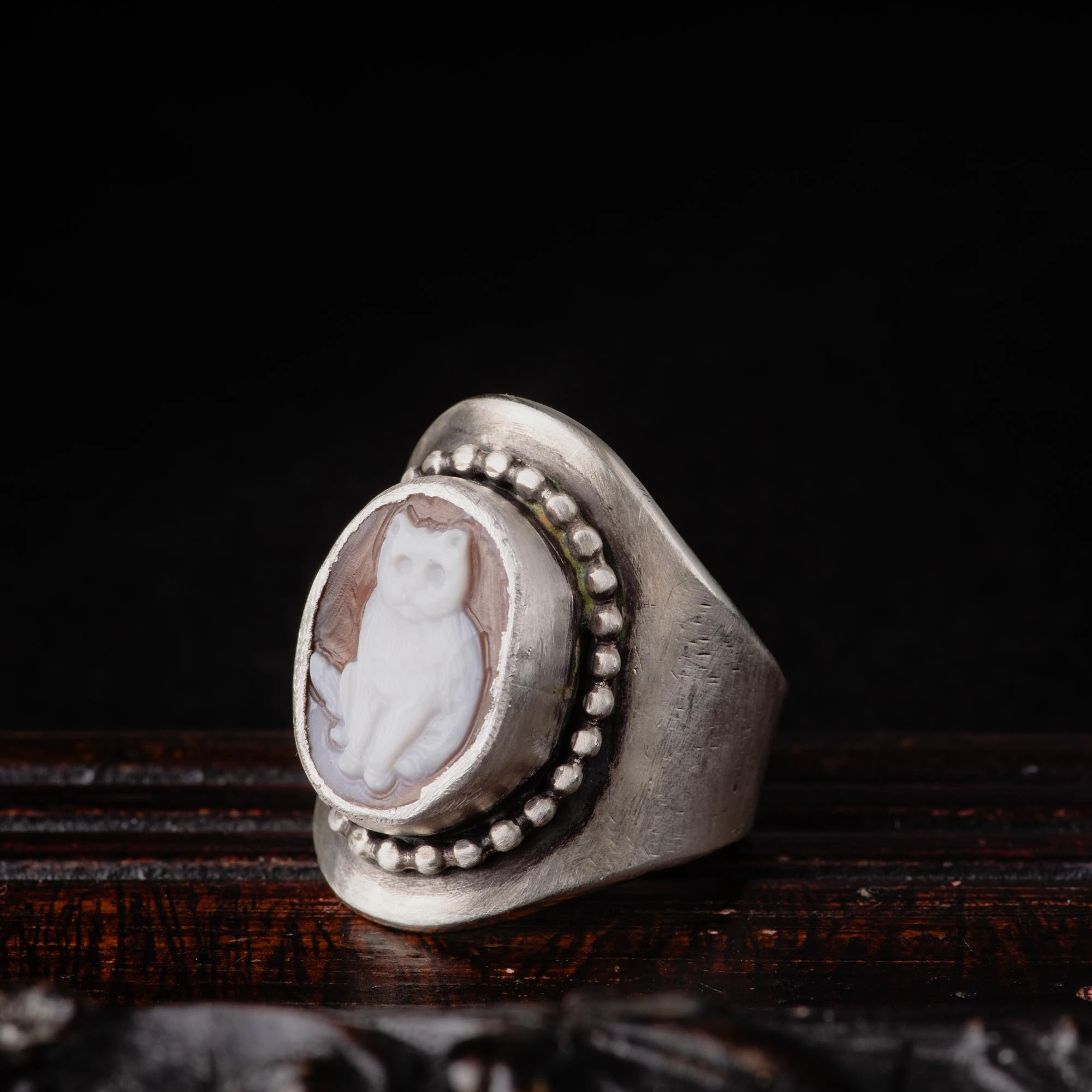 Cat Shell Cameo Sterling Silver Wide Ring