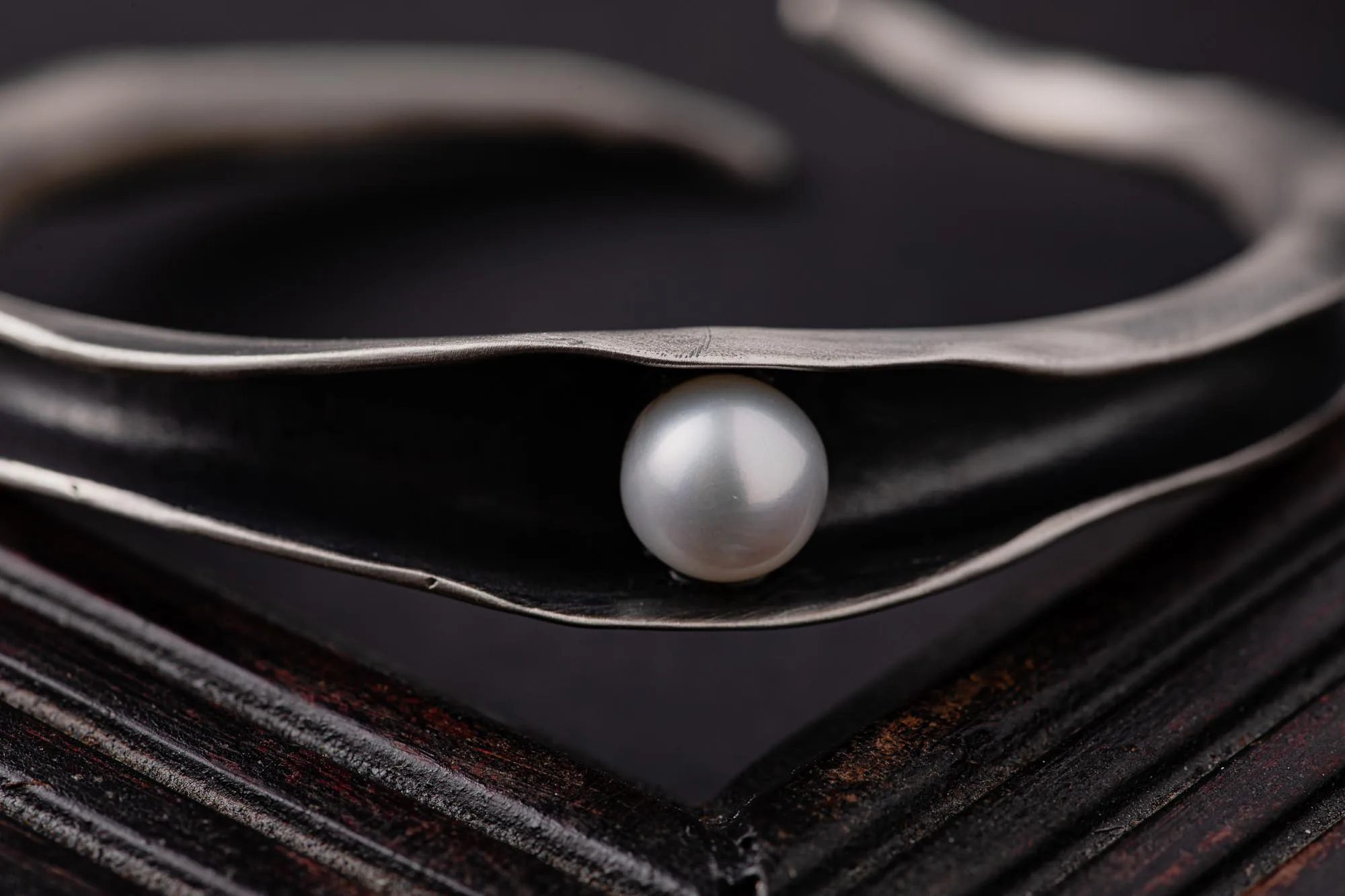 Surrender in the timeless elegance of our Pearl Cuff Sterling Silver Bracelet. This stunning free-form bangle combines class and ease of wear, making it a versatile piece for any occasion. The bracelet showcases a lustrous freshwater pearl delicately hidden and securely held within the folded ends of the cuff.