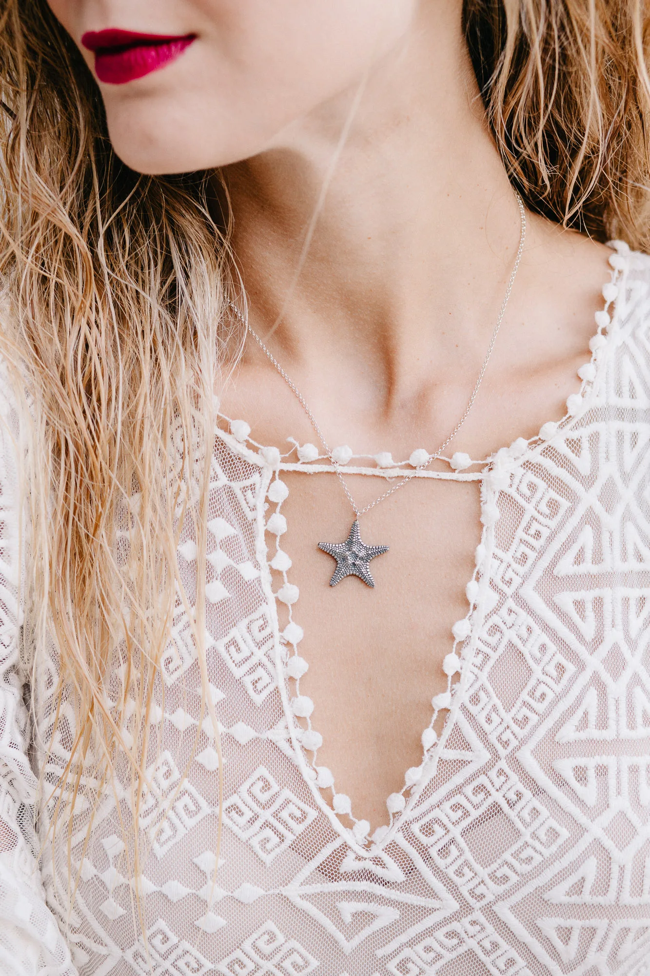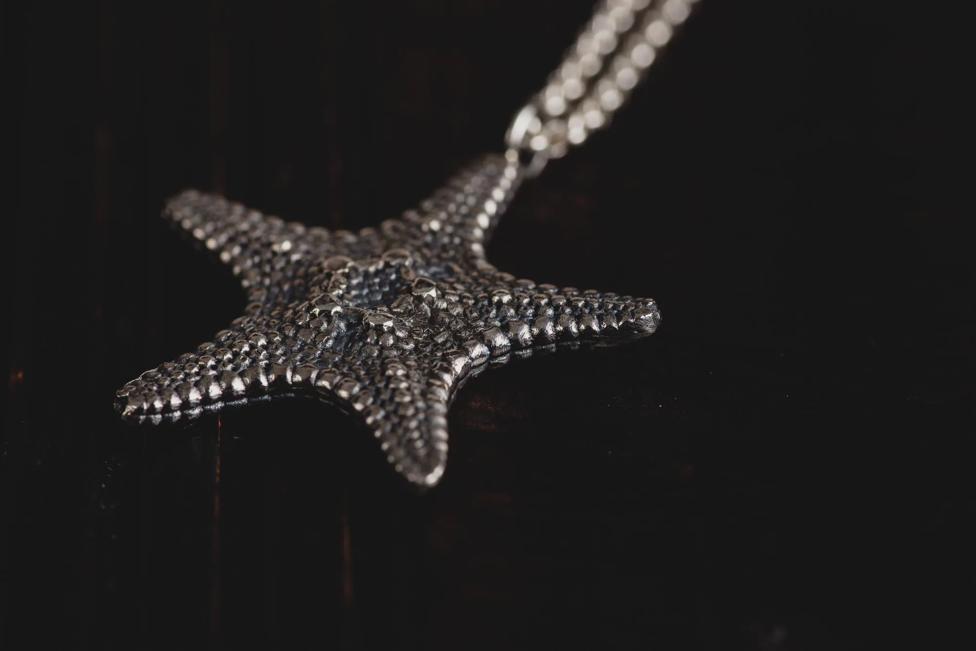 Capture the stunning beauty of the ocean with our Starfish Sterling Silver Pendant. Crafted with intricate detailing, this pendant showcases the exquisite form of a starfish, a symbol of serenity and connection to the sea.