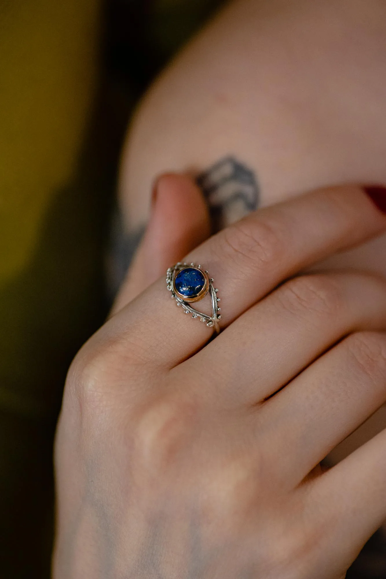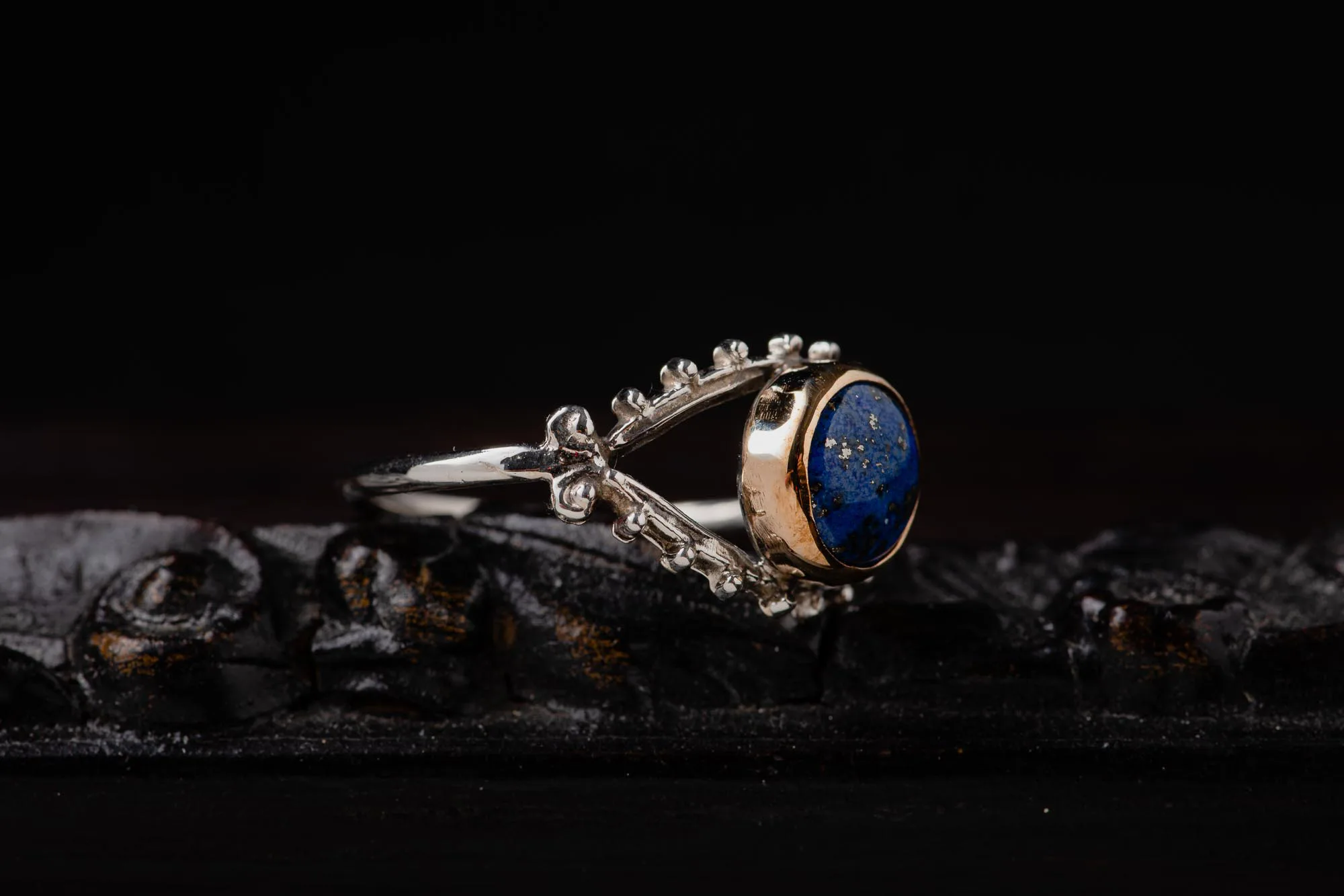 Please note that each lapis used for this ring is a natural gemstone, and one cannot find two identical gems in nature.