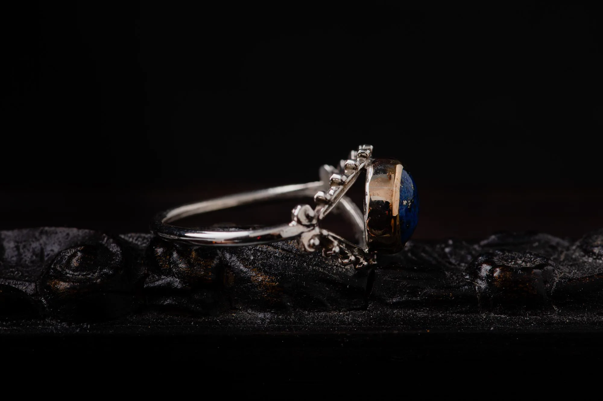 Crafted from .925 sterling silver, this ring embodies elegance and ensures lasting durability. The deep blue lapis lazuli stone adds a mystique to the design, creating a mesmerizing piece that effortlessly complements any outfit.