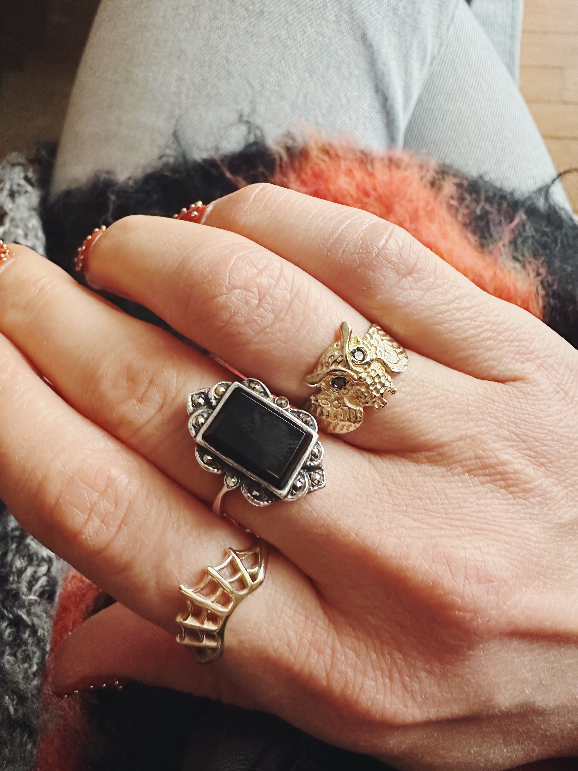 The owl, a timeless symbol of knowledge and intuition, wraps its detailed, oxidized wings around your finger, creating a ring that is bold, versatile, and full of character.
