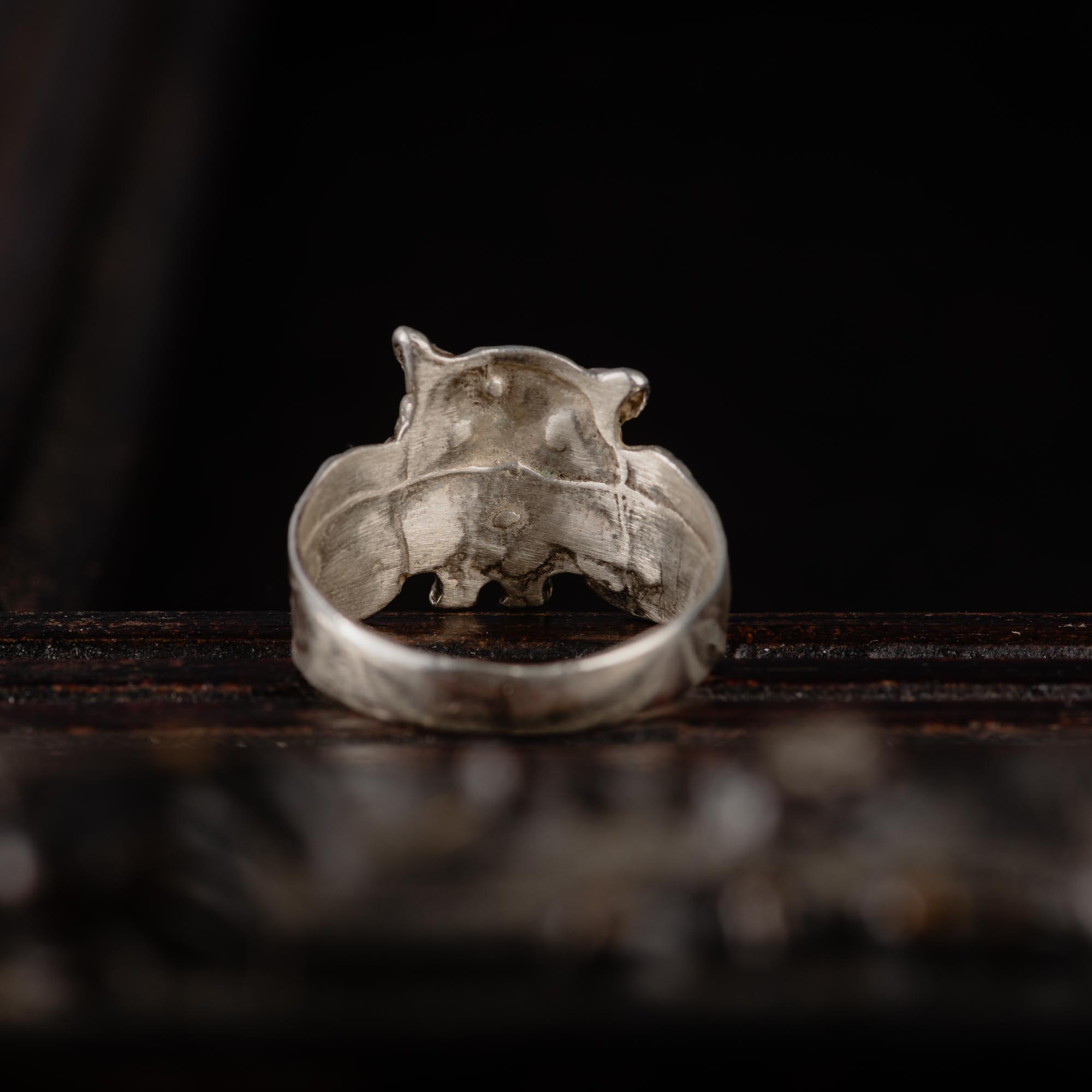 The ring was first carved in wax and then cast in sterling silver.